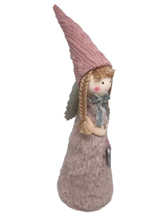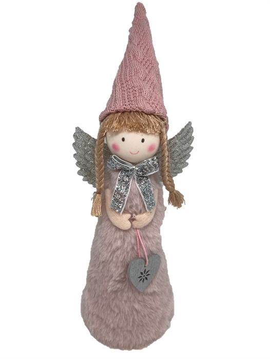 Süsser Deko Engel stehend mit Herzanhänger in rosa. D:7cm x H:25 cm