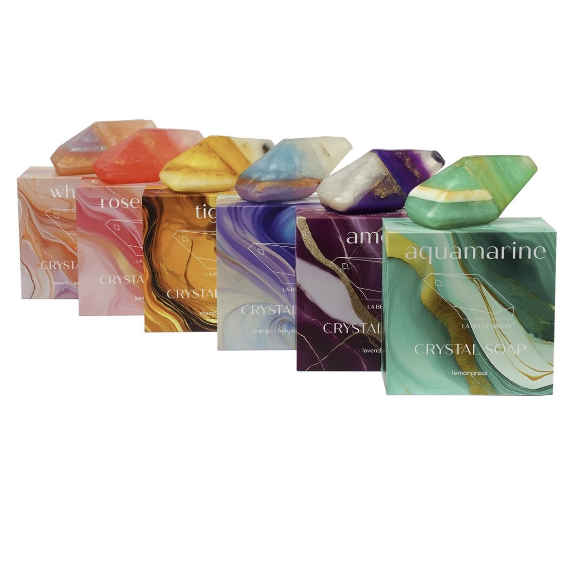 Erlebe die belebende Wirkung der Edelsteinseife Aquamarine von La Belle Savon mit ihrem erfrischenden Zitronengrasduft. Im Inneren dieser kunstvoll gestalteten Seife verbirgt sich ein echter Aquamarin Edelstein – Symbol für Klarheit, Leichtigkeit und inneren Frieden.