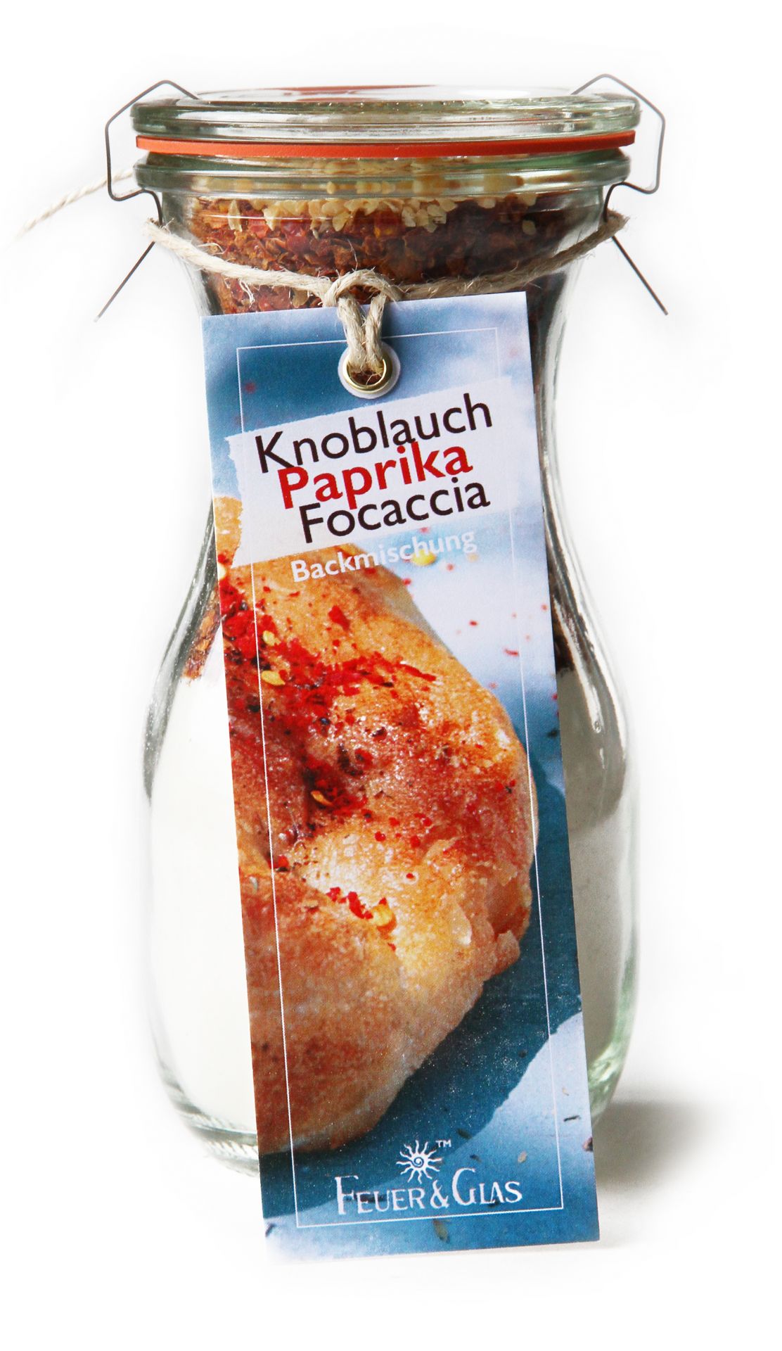 Backmischung im Weckglas für das italienische Fladenbrot.